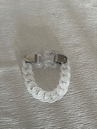 Elegante braccialetto con maglie a catena in materiale trasparente e fibbia in metallo color argento. - Design moderno e minimalista. - Materiale acrilico trasparente per le maglie. - Chiusura a fibbia in metallo lucido.