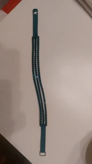 Elegante braccialetto Swarovski morbido con tre fili di cristalli. - Cristalli sfaccettati color verde smeraldo. - Chiusura a bottone in ecopelle verde smeraldo. - Completo di scatola originale, indossato solo per la foto