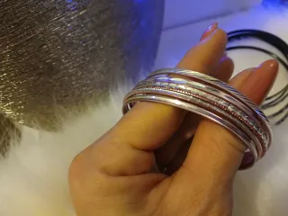 Bellissimi braccialetti per donna, perfetti per aggiungere un tocco di eleganza a qualsiasi outfit. Sono 5 braccialetti in totale. - Realizzati in una combinazione di color oro e argento. - Hanno una finitura scintillante e raffinata. - Sono comodi da indossare.