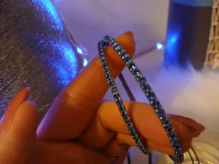 Elegante set di due bracciali impreziositi da strass. - Design sottile e raffinato. - Colore blu brillante degli strass.