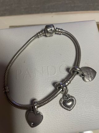 Bellissimo braccialetto #Pandora in argento Sterling 925, con tre charm originali. indossato pochissimo per errata misura, cm 18 - Include il braccialetto e due clip, in regalo charm acchiappa sogni ( manga una piuma) - Perfetto per un regalo o per te stessa. - In ottime condizioni, valore nuovo 140€