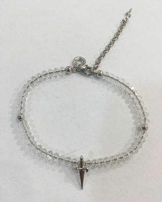 Il bellissimo bracciale in argento 925 di Cesare Paciotti modello JPBR0882B, è caratterizzato da cristalli bianchi molto luminosi, chiusura con moschettone e lunghezza regolabile, grazie agli anelli in argento. indossato solo in due occasioni. - Cristalli luminosi. - Pendente a forma di spada. -argento925 e cristalli