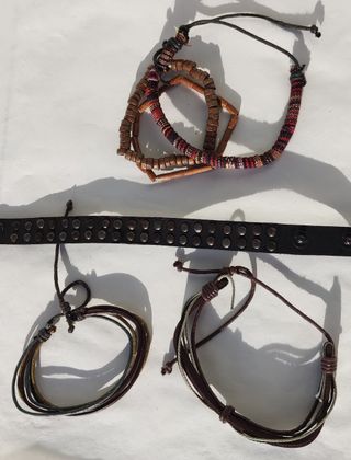 Lotto 5 Bracciali Uomo Pelle Cuoio Etnici Rock