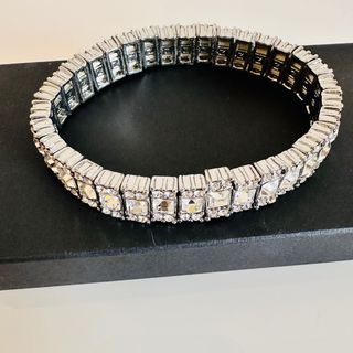 Elegante bracciale con cristalli luminosi. Elastico si adatta a ogni polso. - Design a maglia con inserti rettangolari. - Cristalli trasparenti incastonati.
