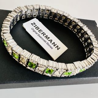 Elegante bracciale Zibermann con cristalli incastonati. - Design con alternanza di cristalli verdi e trasparenti. - Montatura color argento. - Cristalli originali taglio swarovski