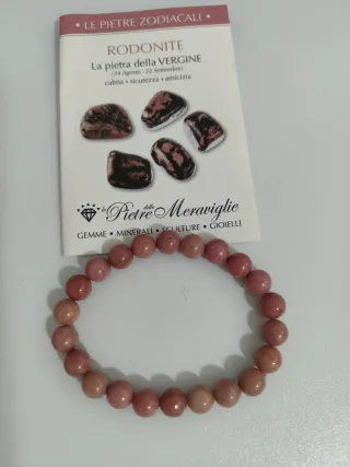 Bracciale con pietre di Rodonite, associate al segno della Vergine. - Pietra della Vergine (24 Agosto - 22 Settembre). - Proprietà associate: calma, sicurezza, amicizia. - Dalla collezione Le Pietre delle Meraviglie.