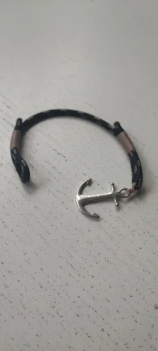 Elegante bracciale Tom Hope con ciondolo a forma di ancora. - Ciondolo color argento. - Cordino intrecciato blu e beige. - Design nautico. Questo è un bracciale Tom Hope Southern 3 in tessuto con ancora in argento 925.
