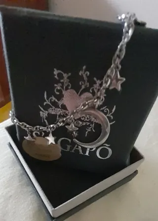 Elegante braccialetto con ciondoli a tema. - Ciondolo a forma di luna. - Ciondoli a forma di stella. - Chiusura a moschettone.