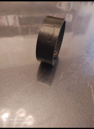 Bracciale in cuoio con simbolo a arpa inciso. - Materiale: cuoio - Colore: nero - Chiusura con bottoni a pressione