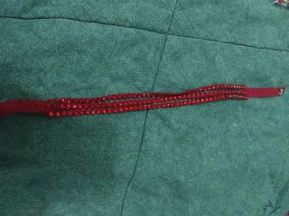 1 braccialetto rosso con fibbietta dorata. Chiusura con magnete un pò lenta (comprato così). 1 braccialetto nero con fascetta dorata, chiusura con bottoni automatici. Foto con misure. Mai indossati