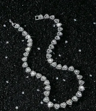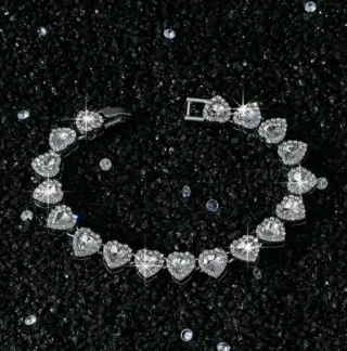 Bracciale raffinato e femminile composto da cuori brillanti effetto diamante, perfetti per dare un tocco elegante e romantico a qualsiasi outfit. Le pietre riflettono la luce in modo bellissimo, creando un effetto molto chic al polso.