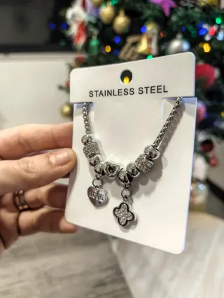 Elegante bracciale in acciaio con pendenti a forma di cuore. - Materiale: Acciaio inossidabile - Design: Cuori stilizzati - Chiusura: Moschettone