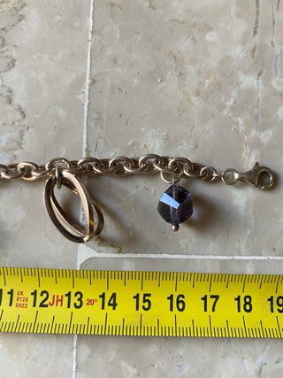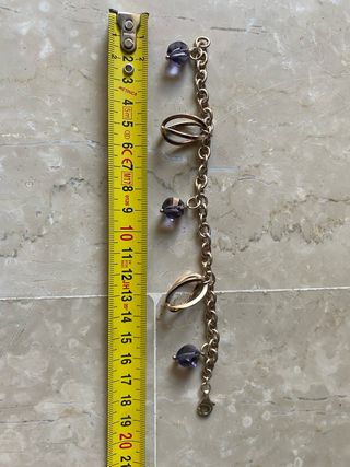 Elegante bracciale in argento con dettagli pendenti. 17 grammi argento 925 - Lunghezza misurata: circa 21 cm. - Charm a forma di goccia. - Pietre viola sfaccettate.