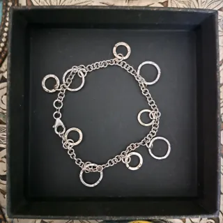 Elegante braccialetto in argento 925 con una catena impreziosita da numerosi cerchi martellati. - Materiale: Argento 925 - Design: Cerchi multipli - Finitura: Martellata
