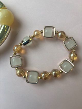Bellissimo bracciale vintage realizzato con conchiglia - Design unico con perline sfaccettate. - Elastico per una facile vestibilità.