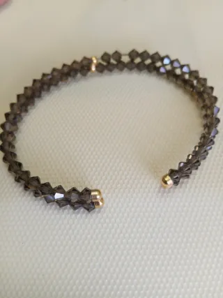 Elegante bracciale Swarovski con finitura oro 750 e cristalli sfaccettati. Misura regolabe ,è aperto - Cristalli di colore marrome - Dettagli in oro 750.