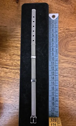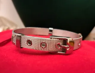 Elegante bracciale unisex , misura piccola, misura in foto. Design cinturino a rete. - Materiale: acciaio. - Chiusura a fibbia regolabile.
