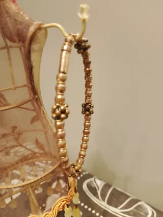 Elegante braccialetto elastico con perline. - Design con piccoli fiori. - Finitura color oro brunito. Completo di scatola ed etichetta.