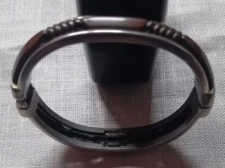 Elegante braccialetto in metallo con chiusura a molla. Un accessorio versatile che aggiunge un tocco di stile. Ha un design a molla per una facile indossabilità. I colori sono marrone e argento. Il materiale è metallo. Le misure con il metro sono mostrate nelle foto. È usato ed è vintage. Risente del tempo.