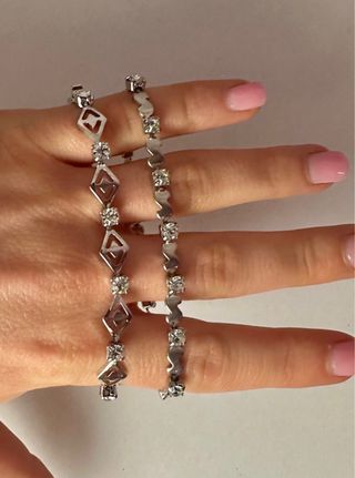 Eleganti braccialetti in acciaio con dettagli luminosi. - Design con cristalli incastonati. - Materiale: acciaio.
