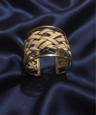 Splendido Bracciale – Design Intrecciato Aggiungi un tocco di raffinatezza unica al tuo stile con questo esclusivo bracciale rigido a fascia (cuff). Un accessorio che fonde perfettamente l'estetica moderna con un richiamo classico. •Il bracciale presenta una struttura metallica a griglia geometrica che racchiude un pregiato intreccio centrale in morbida in tessuto color bianco. • Stile Versatile: Perfetto sia per un look casual chic quotidiano che per completare un outfit elegante da sera. •Comfort: La forma ergonomica aperta sul retro permette di indossarlo e sfilarlo con estrema facilità, adattandosi comodamente al polso.
