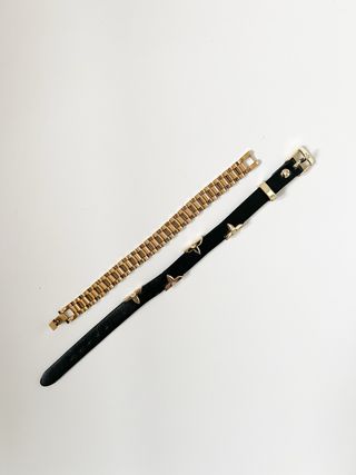Set di due braccialetti da donna. - Uno con dettagli color oro. - Uno con dettagli color argento.