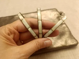 Set di 10 braccialetti rigidi 3 con dettagli in madreperla o pietredure 1 metallo e smalti e altri solo metalli e decorazioni. - Braccialetti in metallo color oro e argento. - Alcuni braccialetti presentano inserti in madreperla. - Decorazioni a contrasto in smalto su alcuni pezzi.