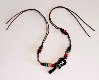Descrizione: Vendo Bracciale a forma di chitarra + Collana con ciondolo a forma di Cuore (Haiti - Handmade). - Ciondolo a forma di chitarra. - Decorata con perline colorate e in legno. - Cordino marrone in caucciù regolabile. Taglia: (Unica) Condizioni: Nuovi (Mai usati) Colore Bracciale: Marrone scuro con inserti verdi. Colore Bracciale: Marrone scuro con inserti gialli e arancioni. Materiale: Legno + caucciù
