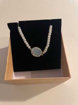 Bracciale con piccole pietre roronde azzurre e piastrina