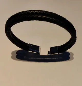 Bracciale in pelle con chiusura magnetica, su misura - Materiale: Pelle - Chiusura: Magnetica - Colore: Nero e argento