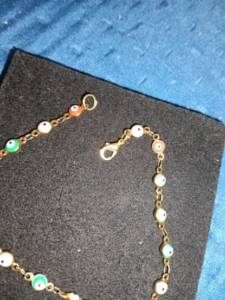 Elegante bracciale con dettagli colorati. - Design con occhio turco. - Catena dorata. - Chiusura a moschettone.