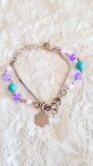 Bracciale con pietre rosa e argento