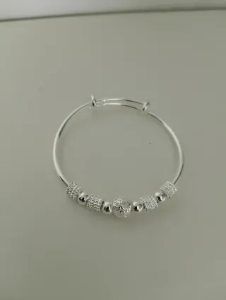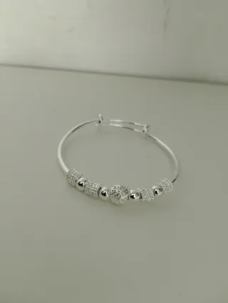 Elegante bracciale in argento 925, perfetto per ogni occasione. Il design è regolabile per adattarsi comodamente al polso. - Finitura lucida. - Decorazioni a perline. - Chiusura sicura.