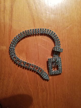 Vendo per inutilizzo bracciale a cinturino con pietre color azzurro,molto luminoso e come nuovo.