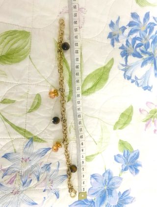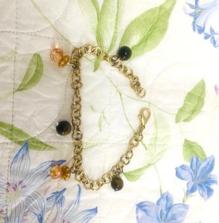 Elegante bracciale o cavigliera dorata con graziosi ciondoli.bigiotteria - Ciondoli a forma di perle e cristalli. - Chiusura a moschettone dorata. - Catena regolabile.
