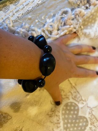 Bracciale donna in pietra nera con elastico pertanto regolabile