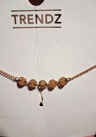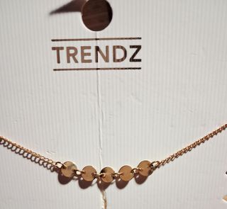 Bellissimo braccialetto color oro del marchio TRENDZ. - Elegante e raffinato. - Perfetto per aggiungere un tocco di stile a qualsiasi outfit. - Composto da una catenina sottile e da cinque dischetti. - Nuovo, mai indossato.