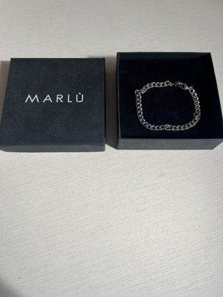 Elegante bracciale da uomo Marlu' con finitura argentata. - Design a catena. - Chiusura a moschettone.