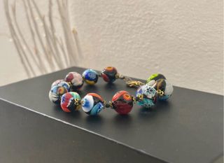 Bellissimo bracciale con perle in vetro di Murano. - Perle lavorate a mano. - Chiusura a moschettone dorata. - Design unico e colorato.