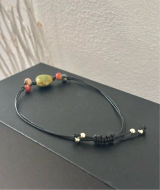 Bracciale con cordino regolabile e una pietra centrale. Un accessorio unico e colorato. - Pietra centrale di forma irregolare. - Perline colorate alternate alla pietra.