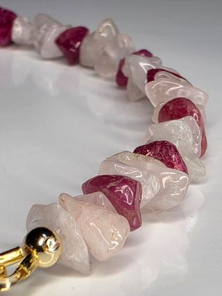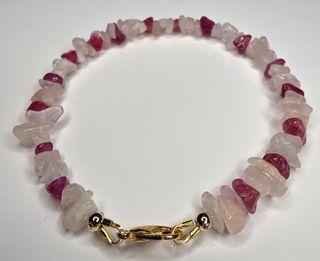 Aggiungi un tocco di luce naturale al tuo polso con questo bracciale unico, realizzato interamente a mano. La combinazione di pietre naturali in taglio "chip" (schegge levigate) crea un design organico e vibrante, ideale da indossare da solo o abbinato ad altri gioielli. 💎 Proprietà delle Pietre (Cristalloterapia): Quarzo Ialino: Conosciuto come il "maestro della guarigione", dona chiarezza mentale, amplifica l'energia e purifica l'aura. Quarzo Rosa (Crepitante): Simboleggia l'amore incondizionato, la pace interiore e la dolcezza, aiutando ad aprire il cuore.