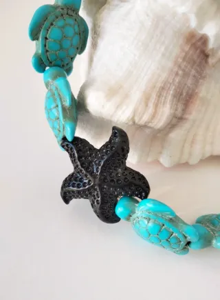 ✨ IN OFFERTA! Bracciale elastico con design a tema marino. Tartarughe marine in pasta di turchese e stella marina in resina nera. Made in Italy. 👉 Per polsi fino a 16,5 cm di circonferenza. ALTRI BRACCIALI NEL MIO PROFILO. # donna