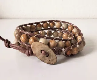 ✨ PREZZO RIBASSATO non soggetto ad ulteriori sconti. Bellissimo bracciale doppio giro, realizzato con pietra diaspro paesaggio naturale da 8mm. Bottone in guscio di cocco naturale. Qualità Made in Italy. 👉 Vestibilità abbondante, per polsi a partire da 17cm di circonferenza. ALTRI BRACCIALI NEL MIO PROFILO. # uomo # unisex
