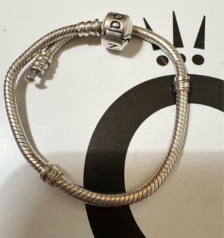 Elegante bracciale Pandora in argento, perfetto per aggiungere un tocco di stile. - Design a serpente. - Chiusura a clip con logo Pandora. - Adatto per aggiungere charm. - IL PEZZO NON È TRATTABILE