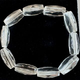 Elegante bracciale realizzato con cristallo di rocca naturale. Le pietre sfaccettate catturano la luce creando un effetto scintillante. - Pietre sfaccettate. - Cristallo di rocca naturale. - Dimensioni circonferenza: 18, 00 cm. N.B.: potrebbe a breve essere necessario sostituire l'elastico interno.