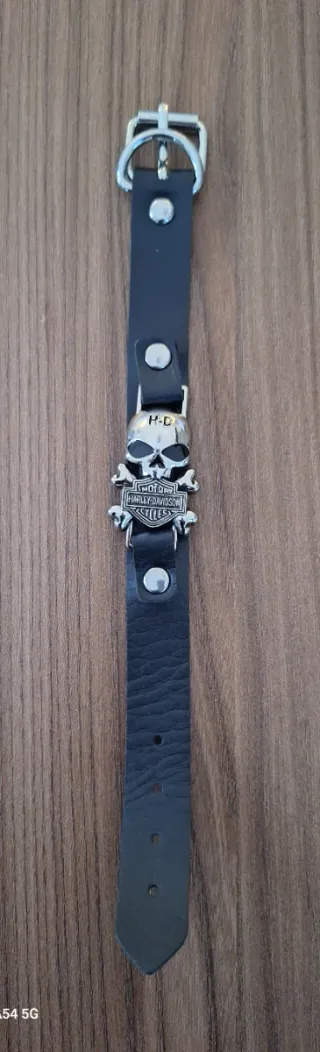 Bracciale in pelle nera con ciondolo a forma di teschio Harley-Davidson. - Dettaglio teschio con scudo Harley-Davidson. - Chiusura a fibbia in metallo. - Design unico per gli appassionati.