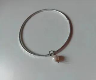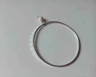 Elegante bracciale con una singola perla. - Cerchio in metallo color argento. - Perla bianca pendente.