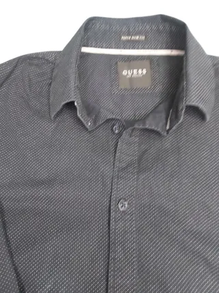 Camicia da uomo Guess dal taglio slim fit. Un capo versatile e alla moda. - Fantasia a micro pois bianchi su fondo nero. - Colletto classico. - Chiusura con bottoni. #guess #,guessuomo #camiciaSlimFit #camiciaelegante #camicianera #modauomo #lookcasual #lookchic #abbigliamentouomo fashionuomo