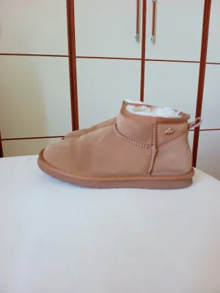 Stivaletti bassi da donna. - Tomaia in camoscio. - Fodera interna in pelliccia sintetica. - Suola in gomma. - Calzano un numero in più rispetto al proprio numero abituale. - Indossati due volte.