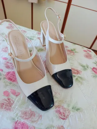 Eleganti décolleté Primadonna con cinturino alla caviglia e tacco largo. Perfette per completare ogni outfit. - Punta bicolore nera e bianca. - Materiale lucido. - Cinturino regolabile con fibbia dorata. - NUOVE, usate due volte.